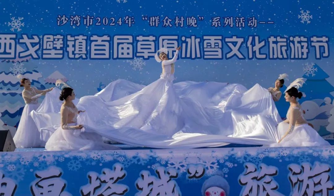 1月21日,在沙湾市西戈壁镇首届草原冰雪文化旅游节活动现场,姑娘追、马上拾银、赛马、文艺演出等一系列丰富多彩的文旅活动,让沙湾市冰雪旅游越发火热。