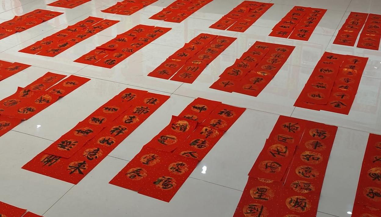 活动现场,来自县委宣传部、县司法局、县社科联、县文联的干部及书法爱好者们挥毫泼墨,书写了一幅幅寓意新春祝福的春联和“福”字,为塔什艾日克镇村民送上了新春的美好祝福,受到了村民群众的热烈欢迎,领到春联和“福”字的村民们脸上都洋溢着灿烂的笑容,大家开心的认为收到春联,感觉年味就更浓啦,标志着春节就要到了。