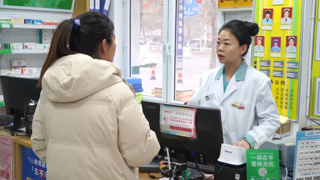 城区某药店店长丁晓艳说:“居民在药店买药的同时可以办理医保业务,方便了购药群众。”