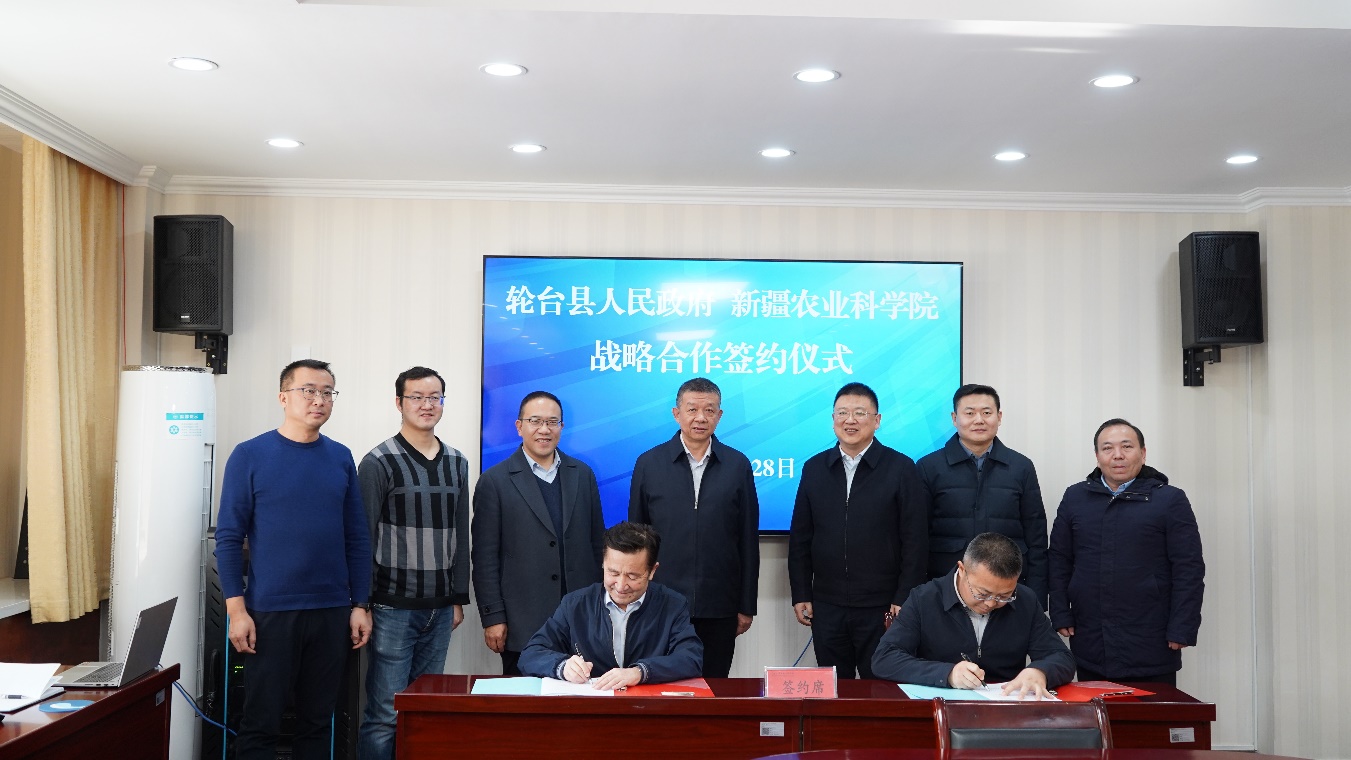 轮台县有关部门负责同志和新疆农业科学院参加签订仪式。(李晓龙)