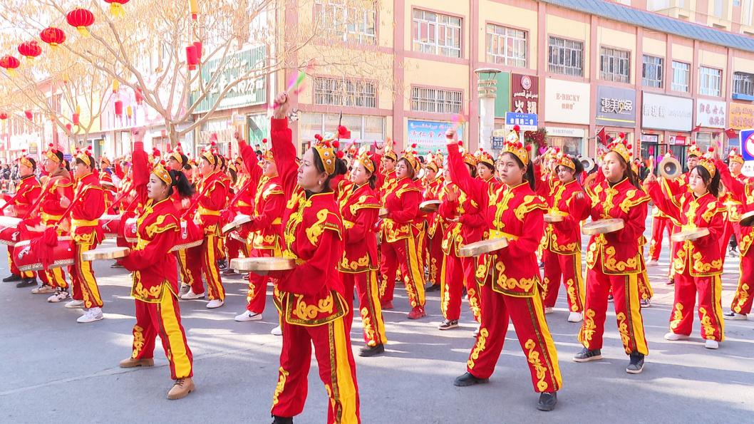 (图为表演社火的演员精神抖擞,动作整齐划一,让观众感受到了浓浓的年味儿 古丽迪雅尔·艾尼瓦尔 摄)