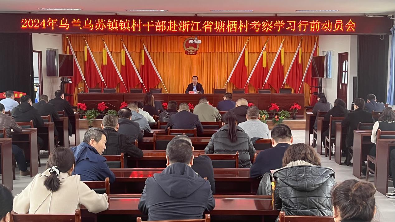 为推动乡村党组织抓党建促乡村振兴工作,进一步拓宽干部乡村振兴新思路,3月11日,沙湾市乌兰乌苏镇召开2024年镇村干部赴浙江省塘栖村考察学习行前动员会,36名村党支部书记、村主任参加,为期7天,镇党委书记雷军参加会议并讲话。