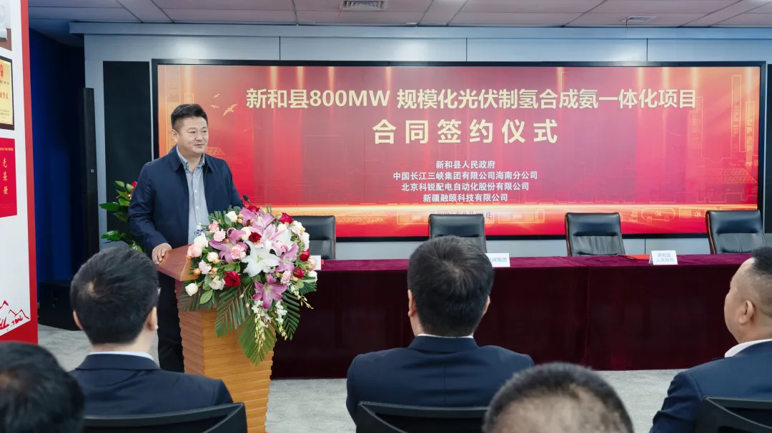 3月30日,新和县与中国长江三峡集团有限公司海南分公司、北京科锐配电自动化股份有限公司、新疆融颐能源公司举行光伏制氢、氢制合成氨一体化项目签约仪式,标志着新和县在新能源开发建设领域迈出了坚实步伐、结出了丰硕成果。