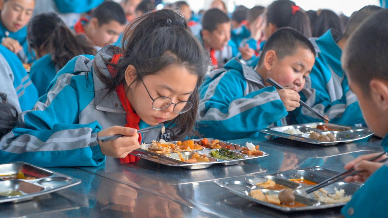 (学生们正在新食堂用餐)