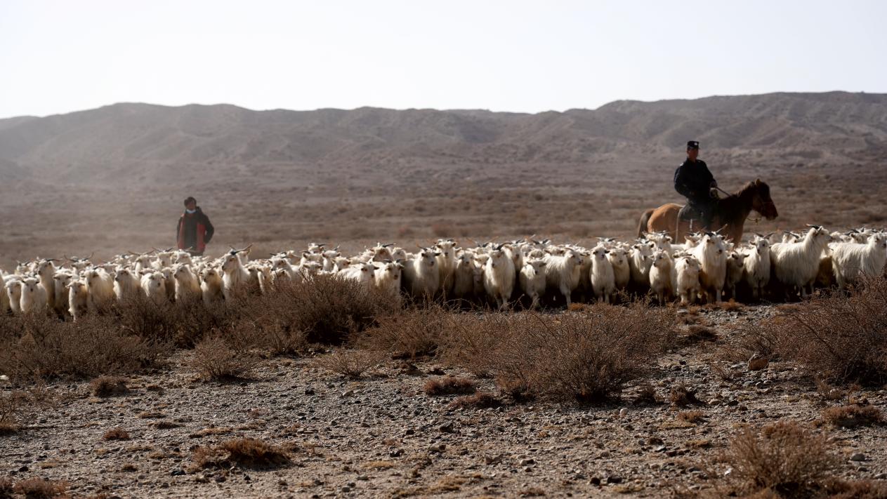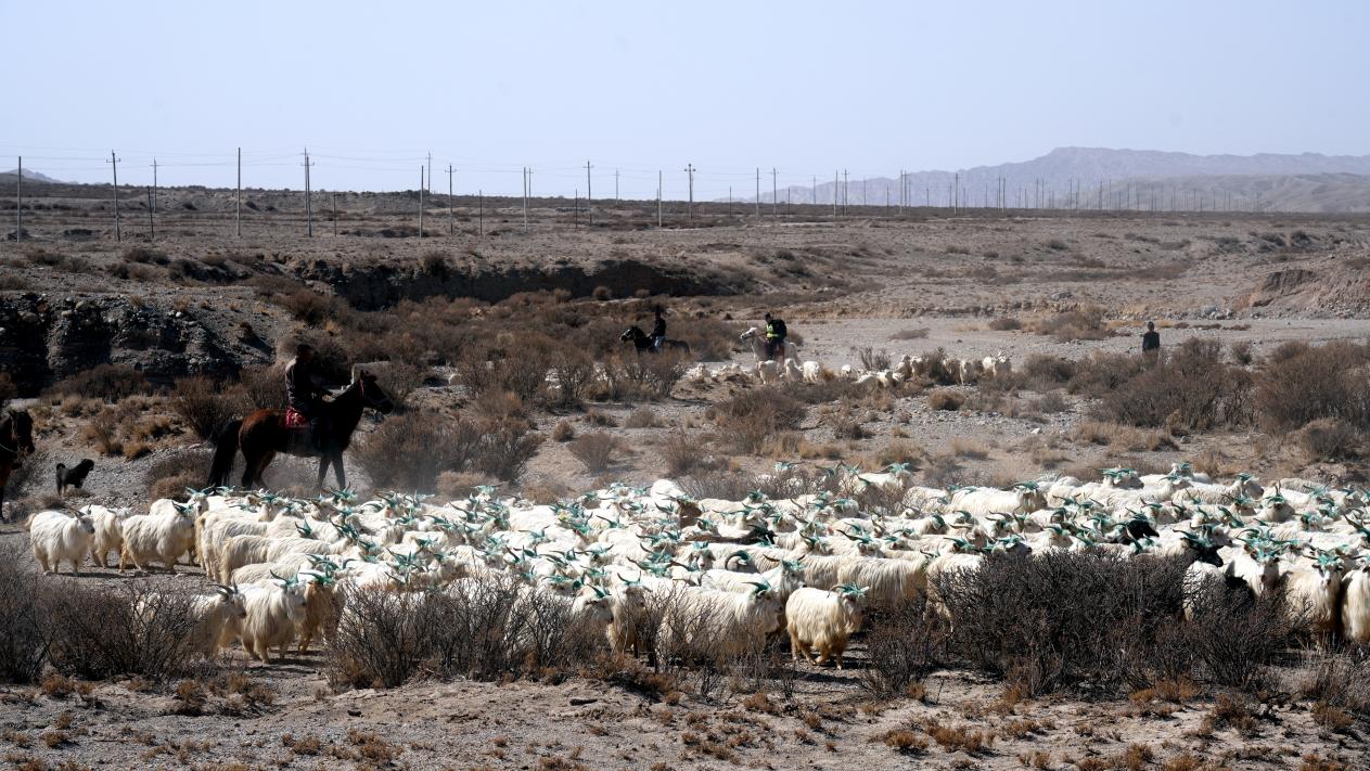 塔格拉克边境派出所民警组建“护牧队”,化身“牧羊人”护送转场。李哲清 摄