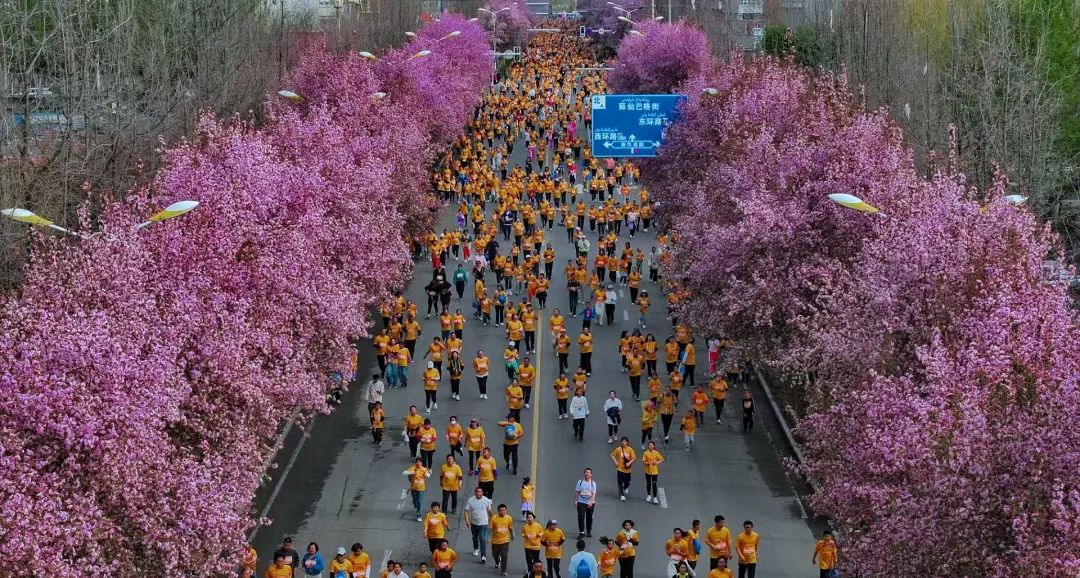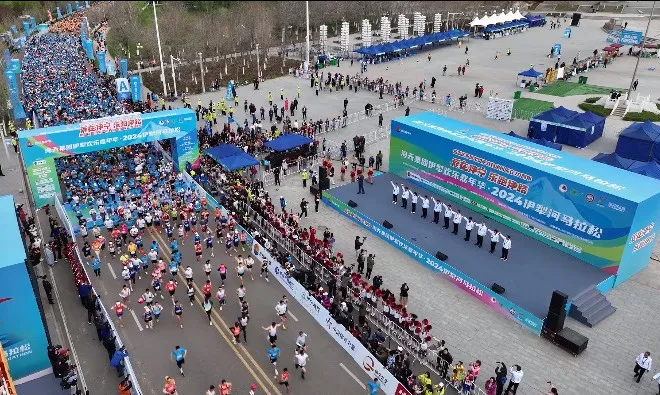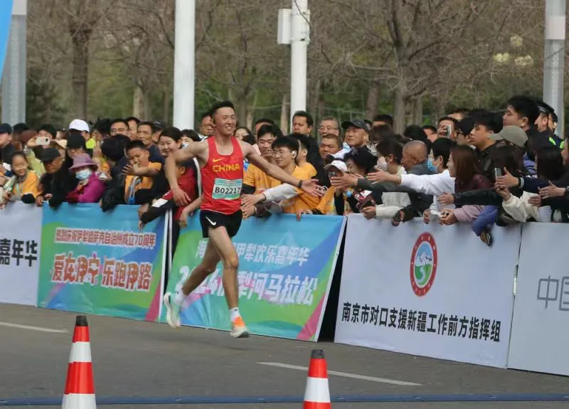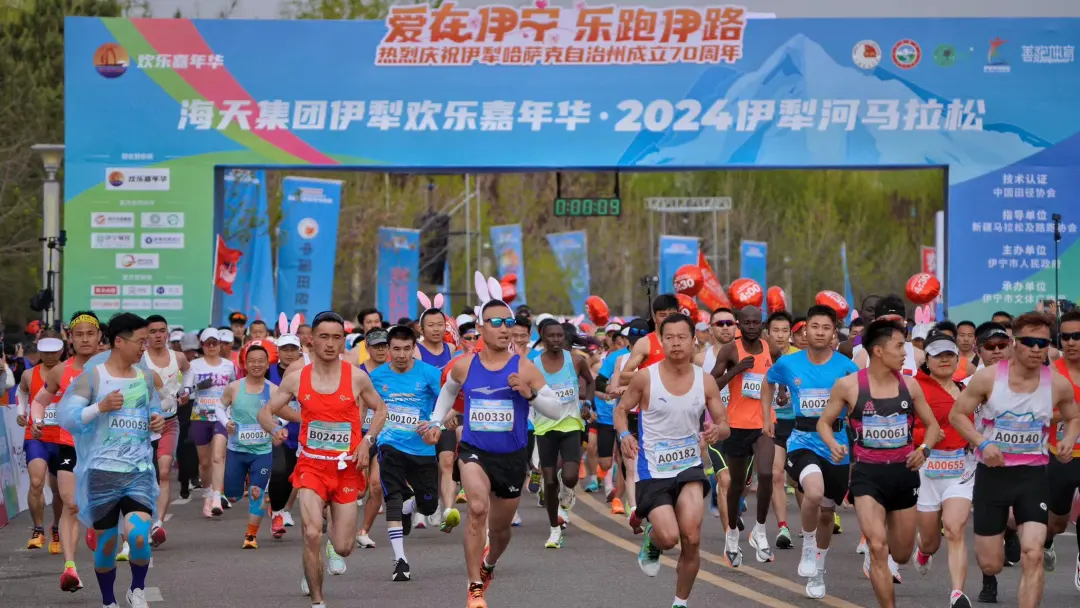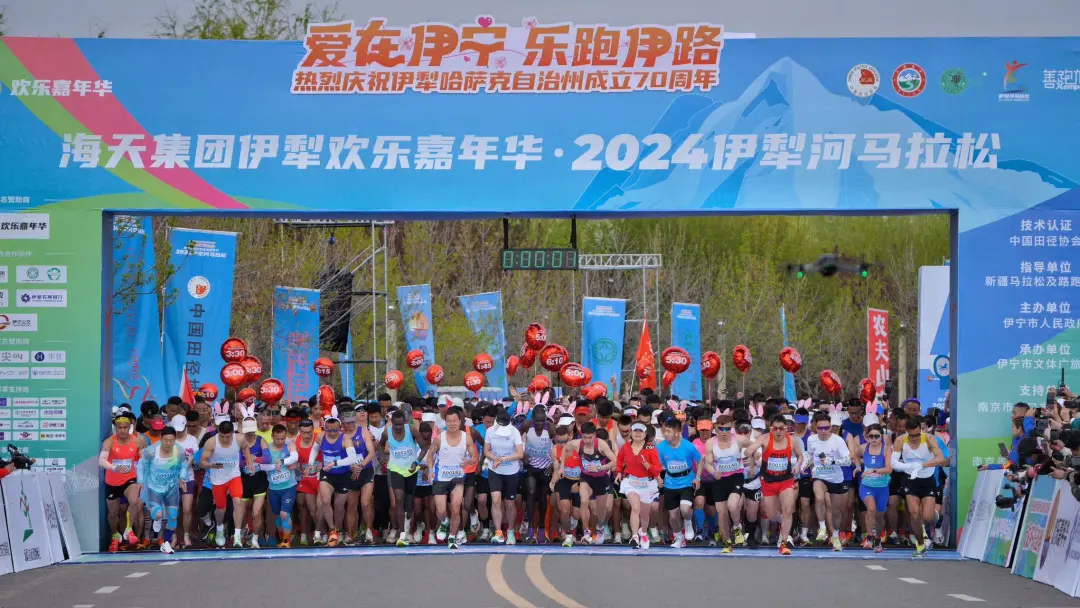 4月14日上午10点,由江苏援伊·南京工作组支持的“爱在伊宁 乐跑伊路”2024伊犁河马拉松在伊宁市海景路七彩广场鸣枪开跑。1万名跑者齐聚伊宁,以奔跑的姿态探索春日花城的美好风光。