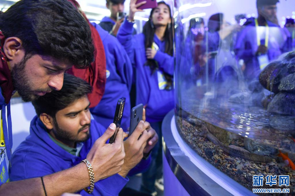 4月15日,参加春令营的来华青年学生在新疆师范大学生命科学学院北鲵馆参观。
