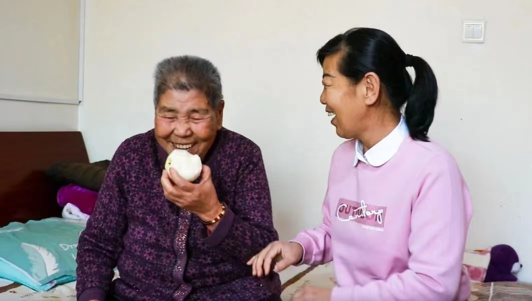 焉耆垦区综合社会福利园区食堂工作人员朱爱兰说:“曾奶奶已经把周园长当成了家人,总是夸赞她好。”