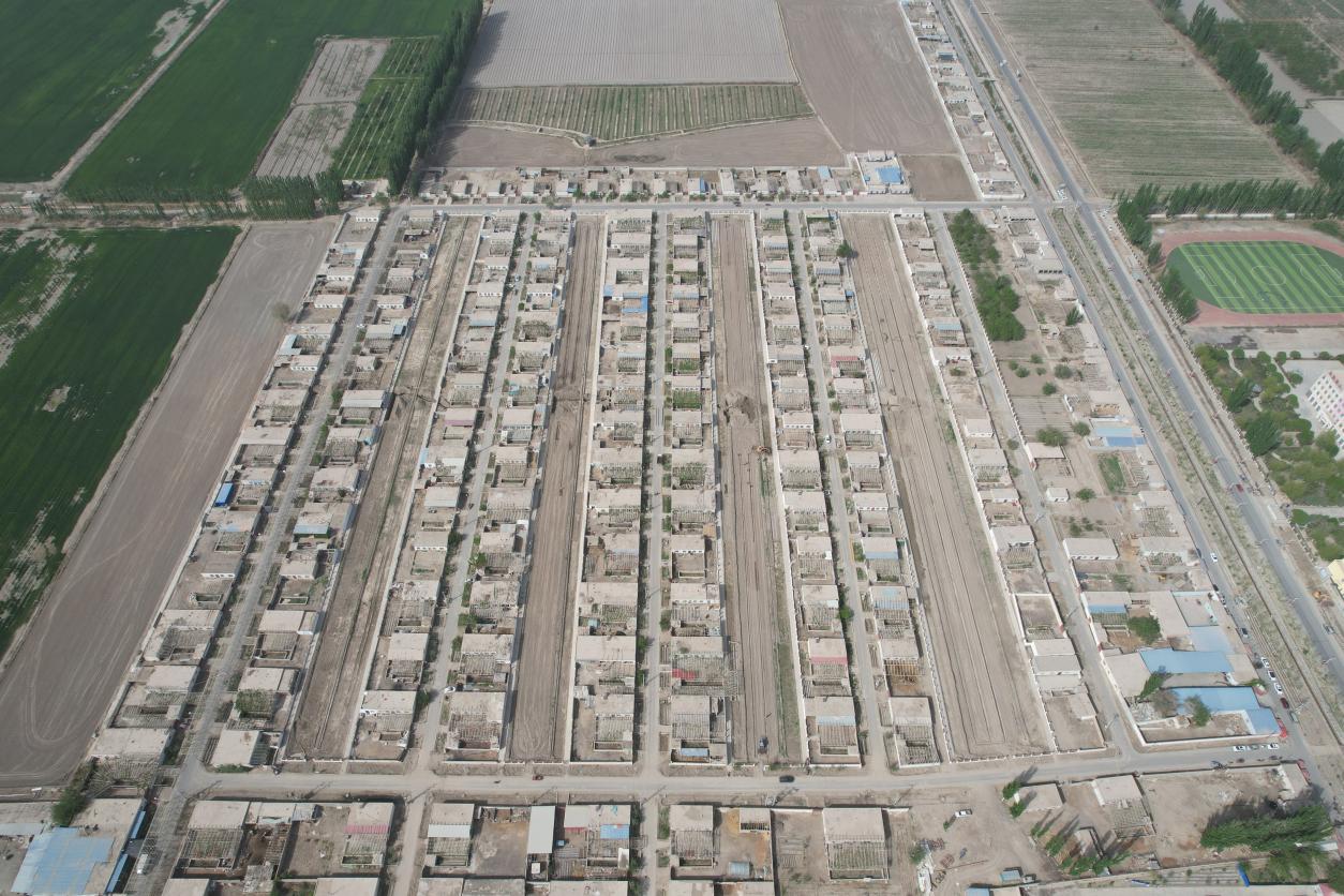 (图为从空中俯瞰塔木托格拉克乡村民房前屋后的空地如条带般铺展在大地上 胡登伟 摄)