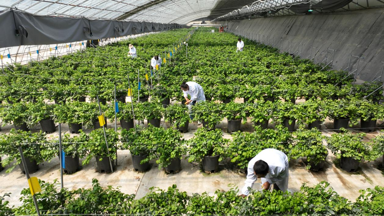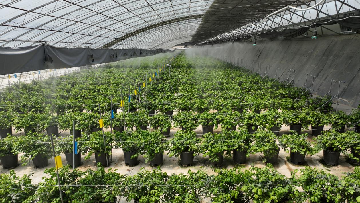 这片蓝莓基地共10个棚,由十四团金杨镇与青岛鲁宏农业集团有限公司共同投资打造,并成立了阿拉尔市海沃智慧农业发展有限责任公司。为种好蓝莓,公司以盆栽的方式装入有机土,每个盆内设置自动注水系统,用水采用总公司的“配方”,以达到压盐碱作用,为蓝莓生长创造良好条件。