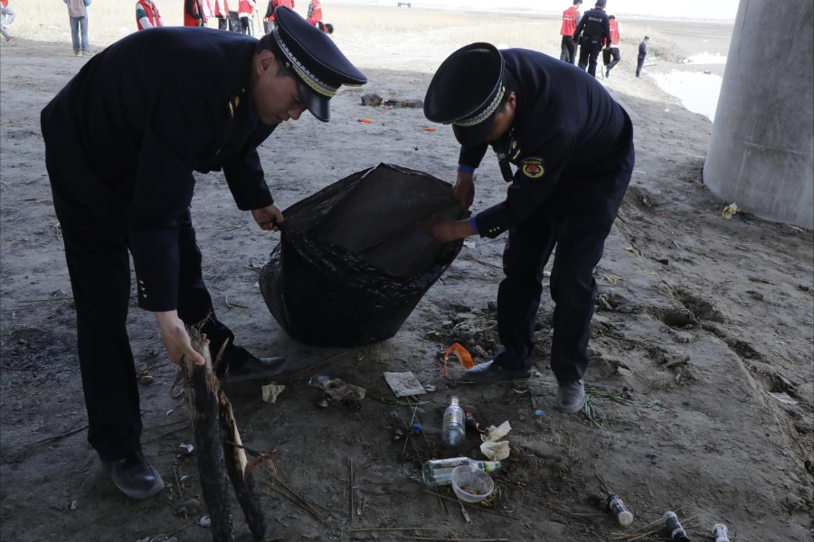 活动中,志愿者对塔里木河河岸两边的塑料袋、饮料瓶等杂物进行了地毯式清理,用实际行动践行生态环保理念,为创建全国文明城市助力。