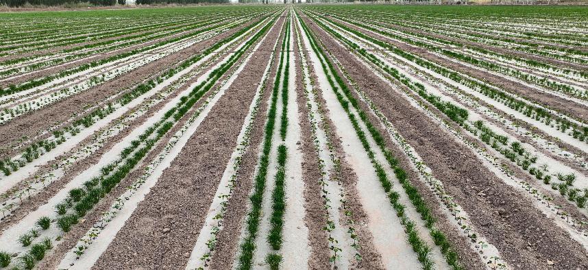 为实现棉花的高质量种植,第一师阿拉尔市通过建设高标准农田、推行新技术、安装水肥一体化设施,在这些农业科技和农业机械的广泛运用下,棉花产量和品质逐年提升。今年,为进一步提高土地产出率,全师201万亩棉花其中有100多万亩采取“棉花+孜然”套种模式,目前套种地块两种作物长势良好,且实现互不影响,职工增收已成定局。