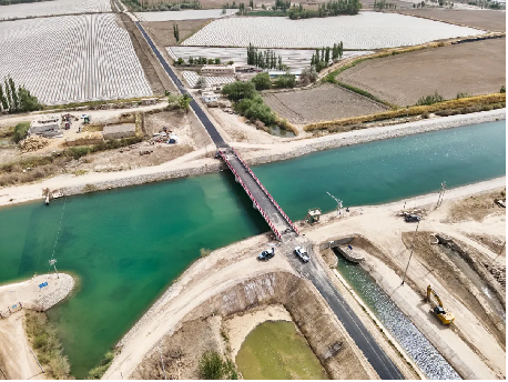 一连与英买力村同处塔里木河源头,中间隔着连通上游水库和胜利水库的塔南总干渠。一连地处干渠以北,英买力村地处干渠以南,两地直线距离3公里,绕行要走20公里。为了缩短两地距离,2023年9月,在经十六团新开岭镇和阿瓦提县实地核查评估,利用台州援疆资金500万元,一座总投资近710万元,跨度60米、宽5.5米的兵地共建“连心桥”正式开建。经过半年多的建设,目前“连心桥”已顺利通车。