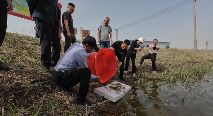 3万只三门青蟹苗在新疆阿拉尔市新开岭镇成功投放。卿朋 摄