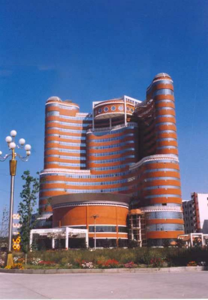 图为刘谞设计的火炬大厦,该建筑位于乌鲁木齐市。