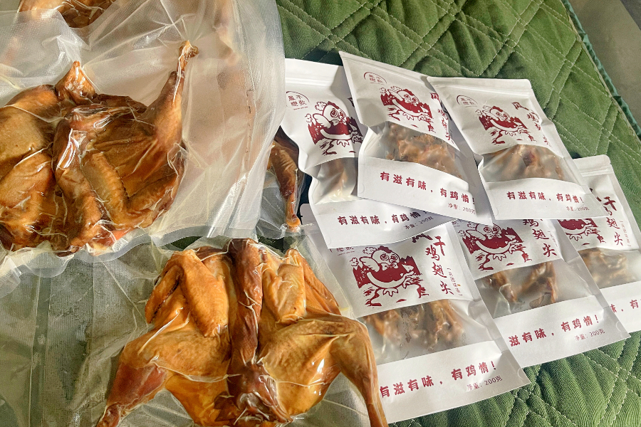 “我们将果园里散养的土鸡用多种秘制调味料腌制,随后进行风干,最后用蒸箱高温蒸熟,便制成了咸鲜入味、越嚼越香的风干鸡,整个制作流程不使用任何添加剂,利用真空包装保存,加热即可食用。”邱家凤说,“从养殖到加工再到销售,连队给予了我很多帮助,周边县市的超市和酒店是我的第一批供应对象,连队还将我的风干鸡作为旅游特产大力推荐,我有信心把这份事业越做越大。”