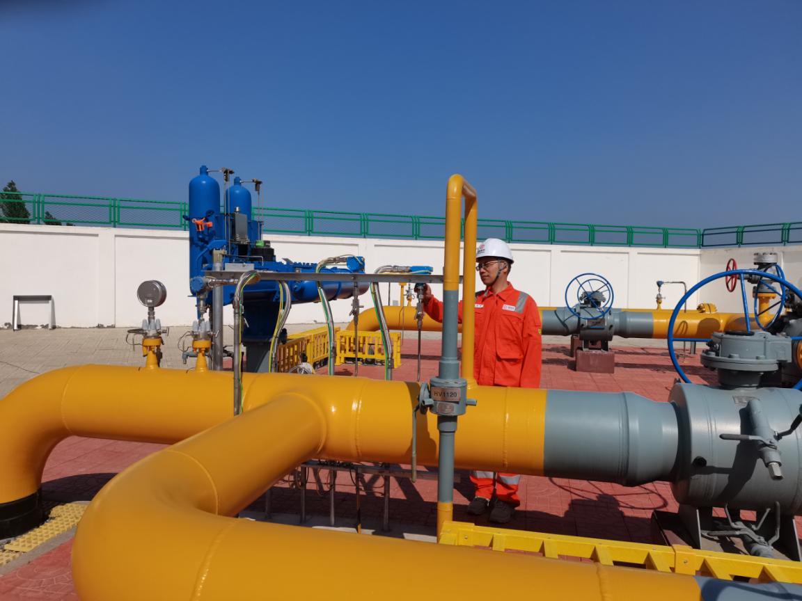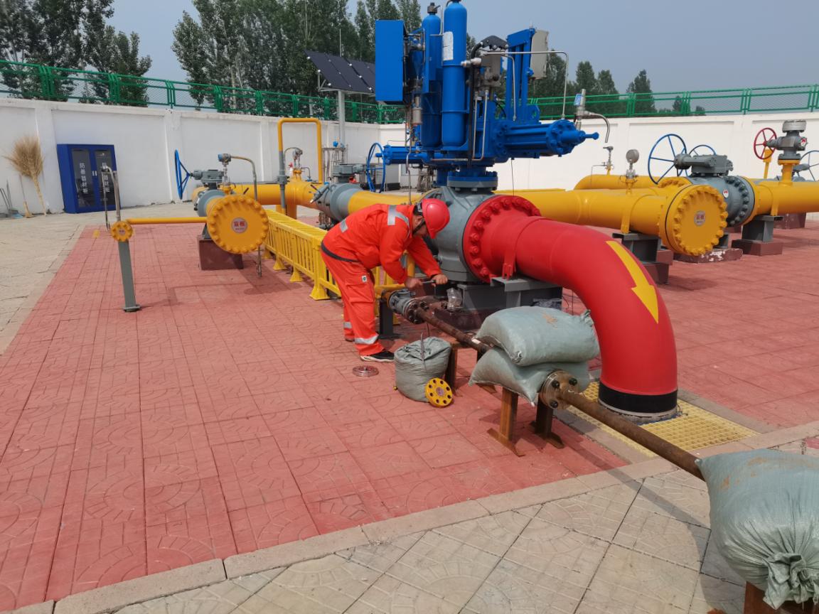 图为西部管道公司技术人员正在进行开阀放空。李坤摄