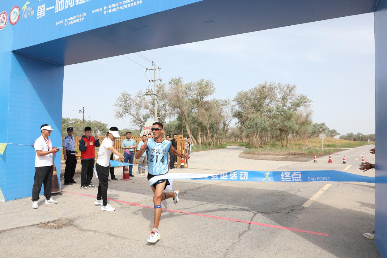 获得此次比赛第一名的选手冲过终点线。田艳玲 摄