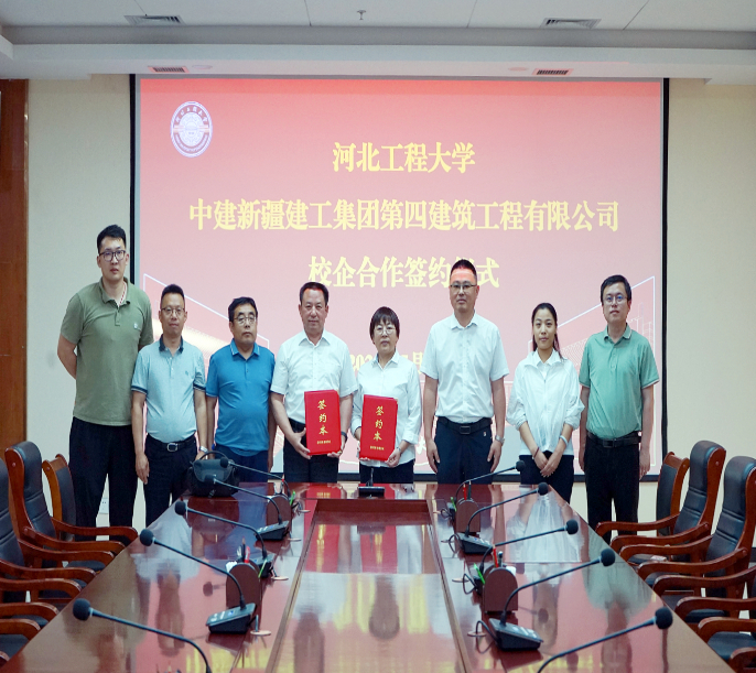 近年来,中建新疆建工四建切实履行稳定就业大局的社会责任,积极开展校园招聘及校企合作系列活动,5月27日,中建新疆建工四建人力资源部经理梁文芹与河北工程大学校党委常委、副校长贾东水进行会谈交流,签署校企合作协议,并举行实习实践教育基地授牌仪式。