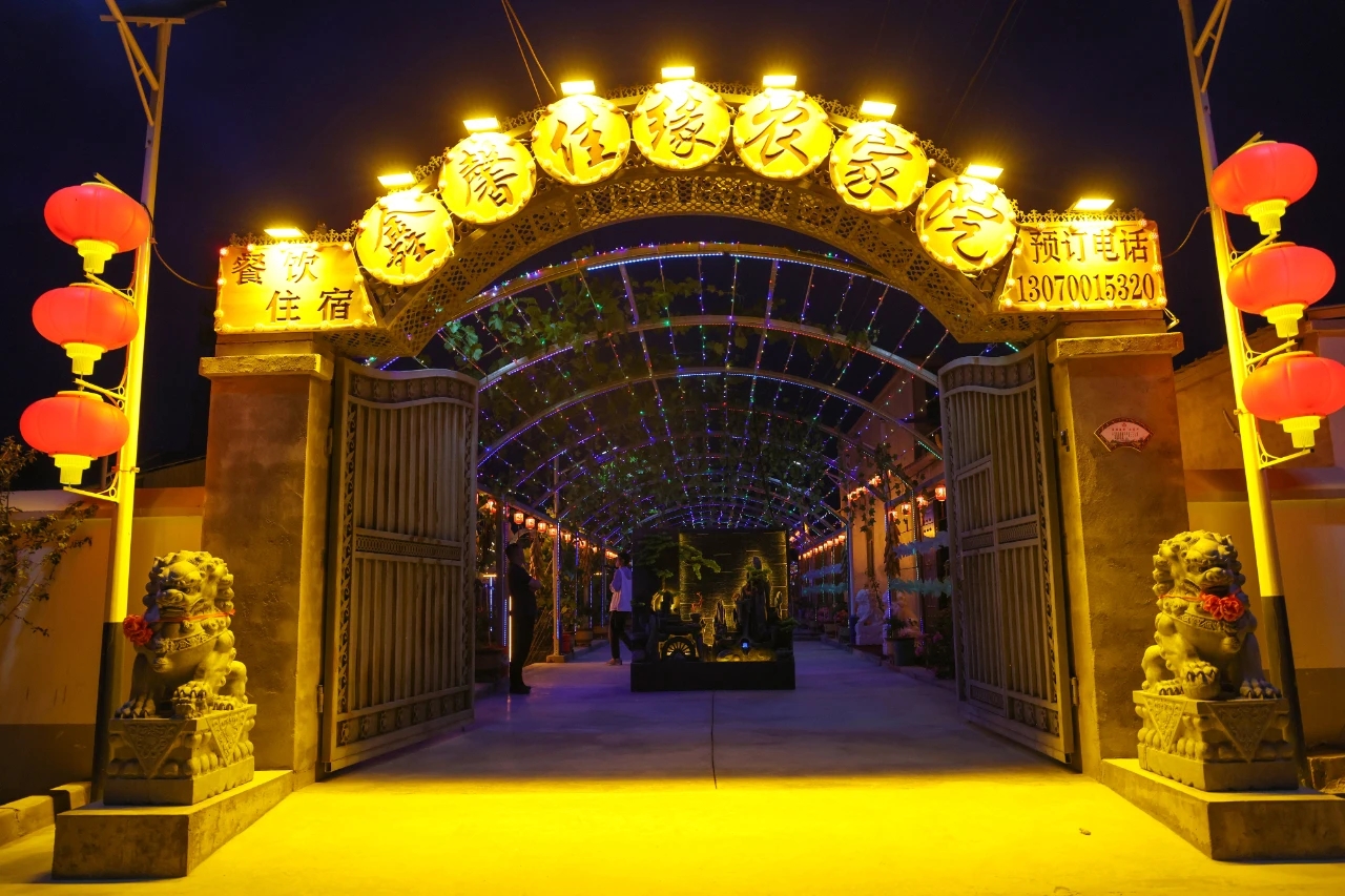 天色渐暗,在该团十二连鑫馨佳缘农家院中,各色灯光亮了起来,璀璨夺目。