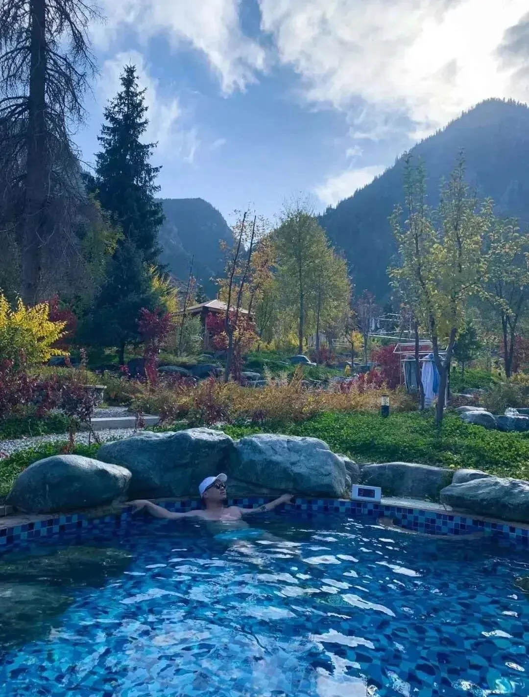 泡在温泉水中