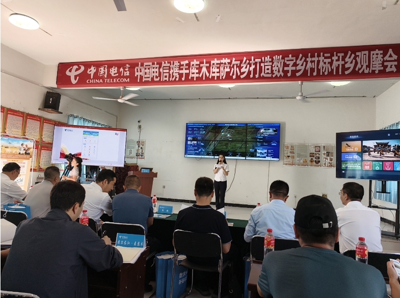 提升乡村治理信息化水平是乡村振兴的重要着力点,近日,中国电信股份有限公司麦盖提分公司联合库木库萨尔乡举办了数字乡村建设现场观摩会。观摩中,工作人员根据数字乡村云平台运行情况,围绕云平台的智慧大屏、智慧党建、平安乡村、天翼云播、政务公开等内容,详细介绍了数字乡村智慧大屏、平安乡村监控全覆盖等功能,并对实时视频、语音提示、AI服务等应用场景进行了现场演示。同时,对首批数字乡村建设行政村进行了授牌,进一步推动数字经济在广袤乡村开花结果,助力乡村全面振兴。