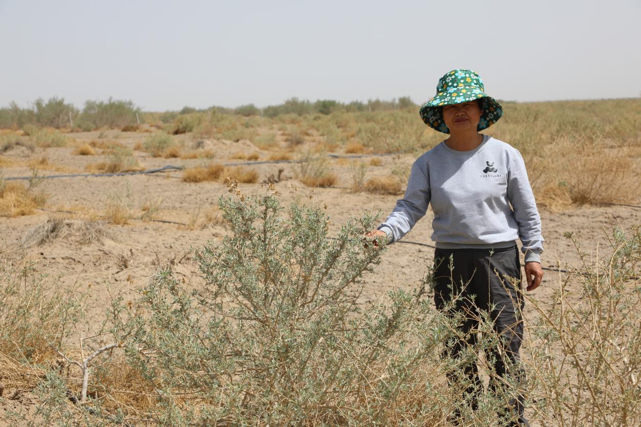 迎着沙漠上吹拂来的热浪,谢小云撸了一下遮掩住黝黑脸颊上的发丝,那些逐渐斑白的发丝在迎风飘荡。(朱志升 郑亮)