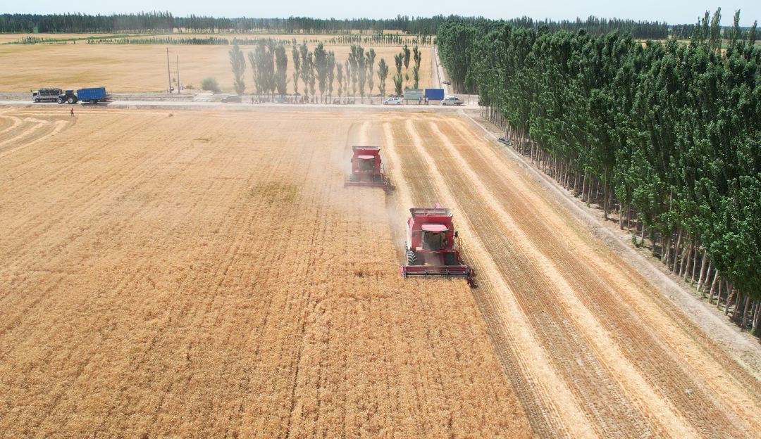 新和县农业农村局农业技术推广中心主任马忠强说:“我们全县种植冬小麦面积是24.5万亩,经过测产平均单产要比去年提高4%以上,全县已经组织了300多台的收割机,并对农机手进行了培训,坚持做到成熟一片,收获一片,机收减损,颗粒归仓,力争于7月1日之前全部收获完毕。”