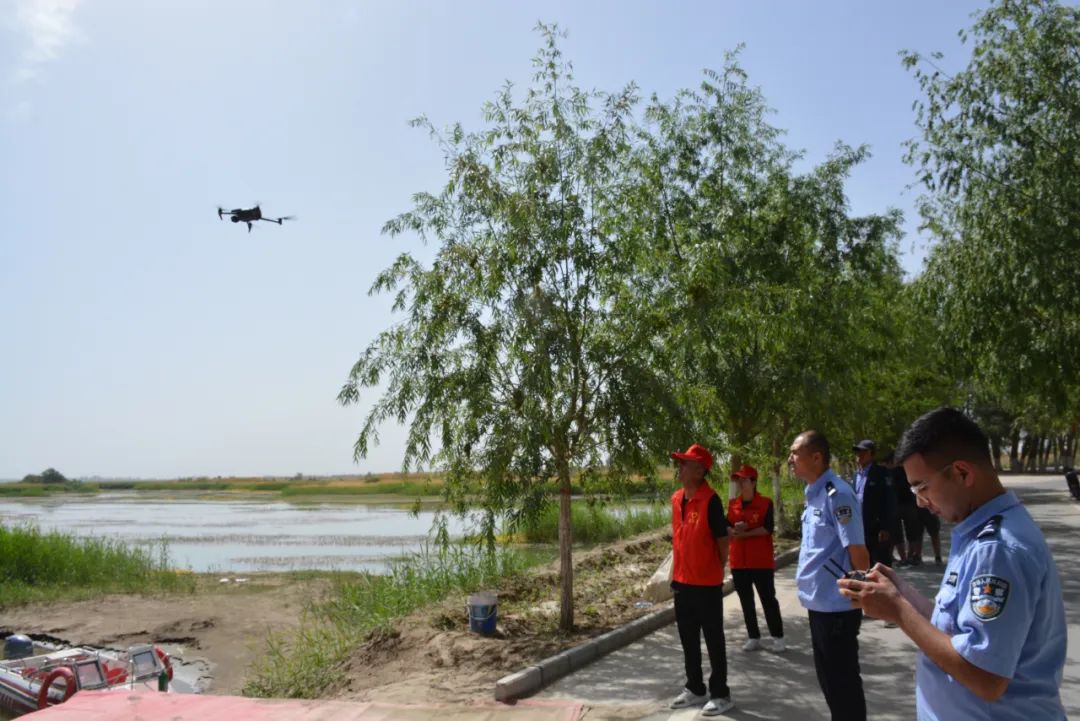 “孩子们,不要在水塘边逗留、玩耍,避免发生滑倒、落水等情况,请马上离开这里......”同时,为进一步筑牢防溺水安全“防护墙”,麦盖提县吐曼塔勒派出所对重点区域增设警示牌和警示标语,提升群众对危险水域的风险识别能力,并巧借无人机力量,做到全方位无死角巡防,将危险因素降到最低,切实筑牢防溺水“安全堤坝”。