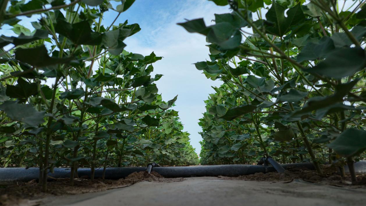 六团双城镇十一连职工廖立文说:“去年这个棉田棉花单产达到480公斤,今年,你看这个长势,500多公斤是没有问题的,这个产量是我们前两年不敢想象的。”