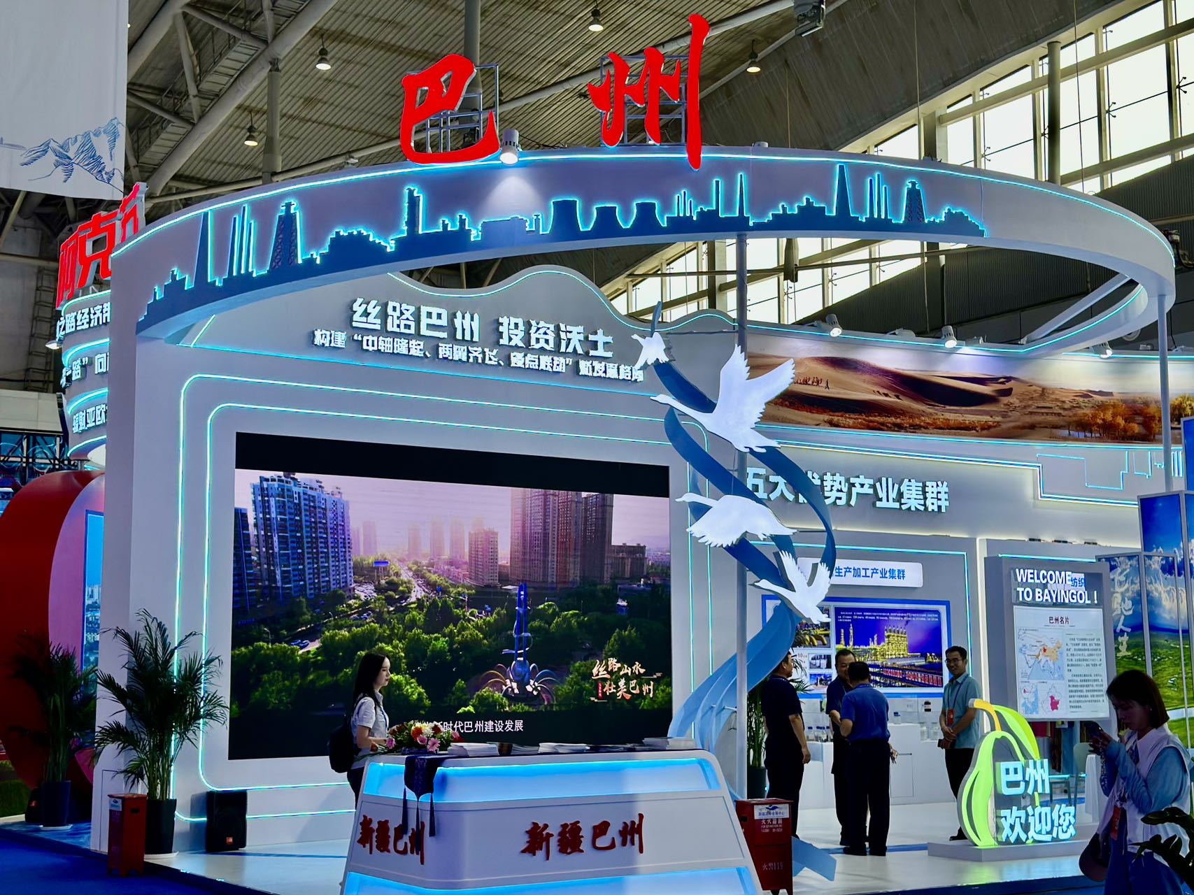 在第八届中国——亚欧博览会上,巴州展厅全面、系统、详细的展示近年来巴州社会经济高质量发展成果,体现巴州经济发展主动融入自治区“八大产业集群”和环塔里木经济带建设,在主攻“七大重点产业战场”的基础上,着力培育“五大特色优势产业集群”,构建“中轴隆起、两翼齐飞、多点联动”的经济高质量发展格局,打造环塔里木经济带的重要增长极,激发新质生产力,突出主题“丝路山水,壮美巴州”。
