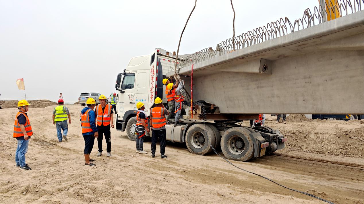 6月25日,G3036阿克苏至阿拉尔高速公路(以下简称“阿阿高速公路”)塔里木河特大桥首榀预制箱梁精准就位,标志着该标段正式进入桥梁架设的关键时期。