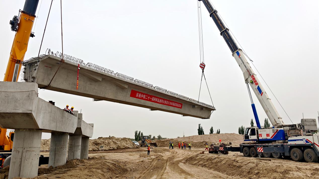 阿阿高速公路项目三标段项目经理李建杰说:“塔里木河特大桥全长1.687公里,其中,桩基共有236根,目前已全部完成。墩柱完成50%,系梁完成50%,盖梁完成了30%。箱梁总数为448榀,目前已完成200榀,约占总量的45%。我们今天开始架设第一榀箱梁,并计划每日完成4榀。箱梁的生产任务预计将在10月5日全部完成,架设任务则在11月15日全部完成。我们确保今年梁体全部架设完成,并实现桥面系半幅拉通。”