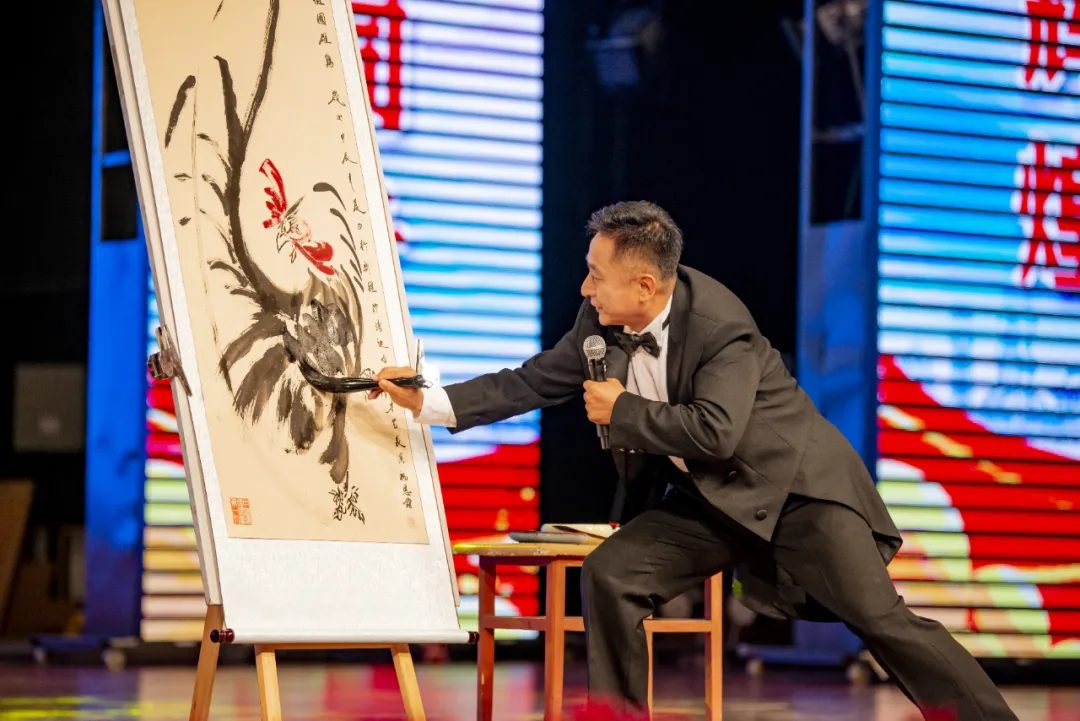 不一会一只昂首阔步的雄鸡展现在观众眼前