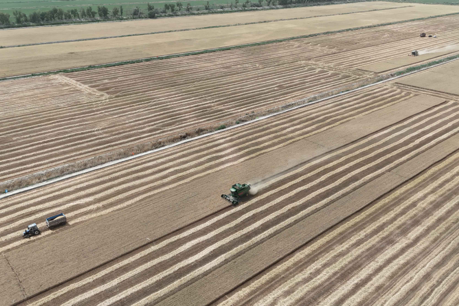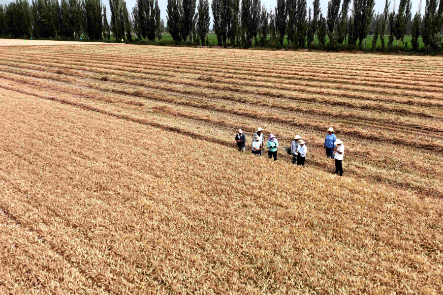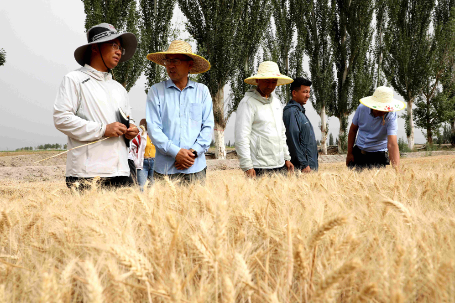 盛夏时节,南疆大地,小麦开镰收割,新疆生产建设兵团第一师阿拉尔市万亩冬小麦高产示范田也迎来了“大考”。6月25日至26日,经兵团农业农村局申请,专家组对该师市创建的冬小麦高产示范田采取百亩示范田、千亩示范方、万亩示范片的方式进行实打实收测产,三项指标均创南疆冬小麦高产纪录。