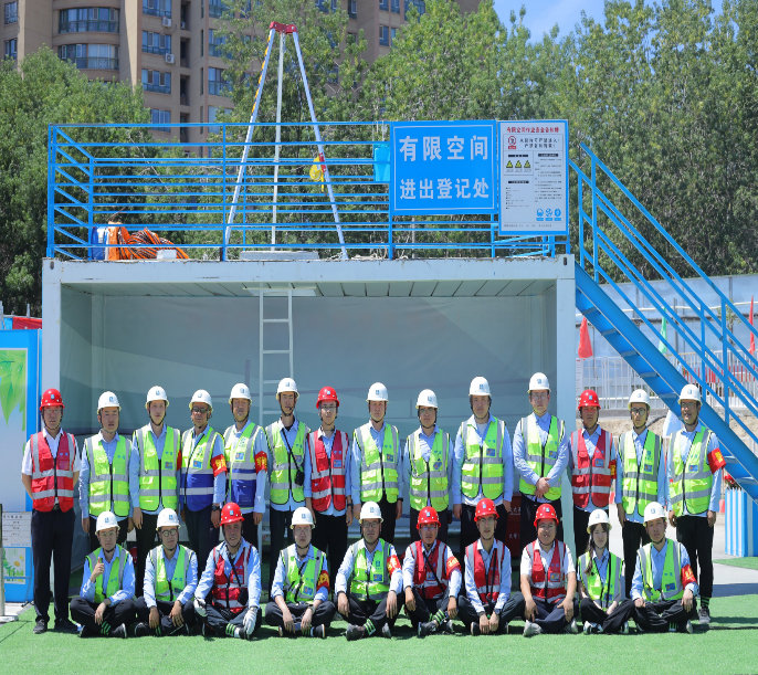 随后,全体参会人员深入施工现场,参观了项目“红色工地”、工人入场流程、入场体检、安全教育、安全标准化设施应用、中建安全智慧平台使用、质量过程管控及亮点做法等区域。