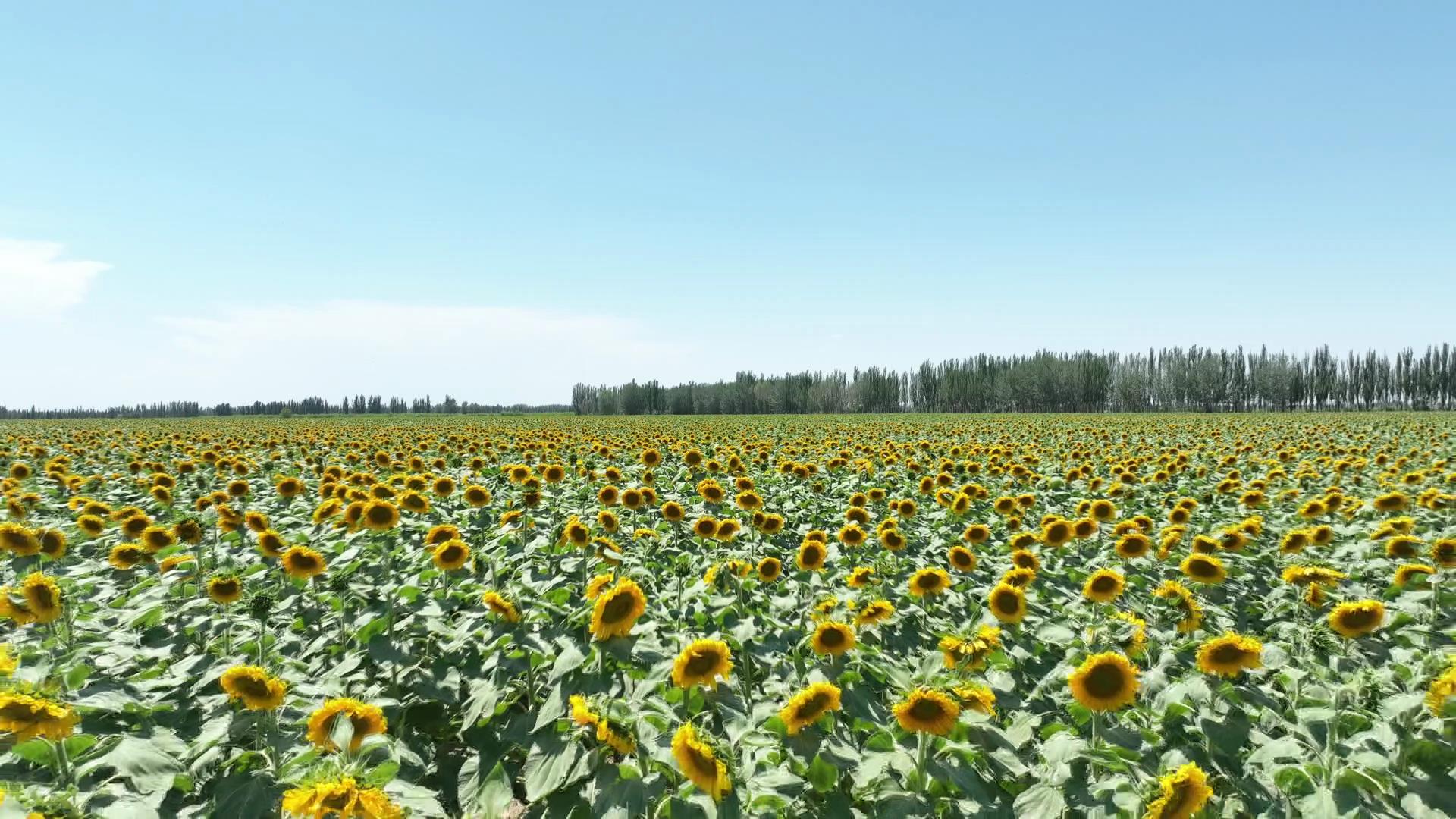 阳光正好,葵花盛开。盛夏时节,麦盖提县成片的向日葵竞相开放,犹如金色的花海。一垄垄向日葵在阳光照射下鲜艳夺目,花香四溢,形成了一幅乡村振兴的美丽画卷。
