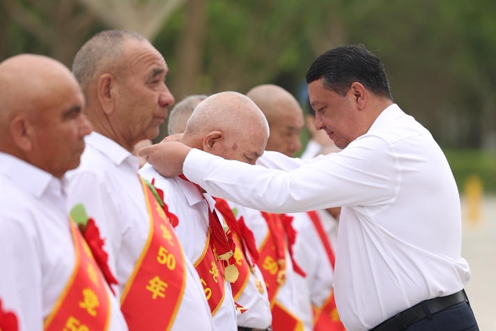 为大力弘扬伟大建党精神,继承和发扬党的光荣传统和优良作风,7月1日,麦盖提县举行了“七一”升国旗暨“光荣在党50年”纪念章颁发仪式,以庄严神圣的方式表达对党的无限忠诚与热爱。