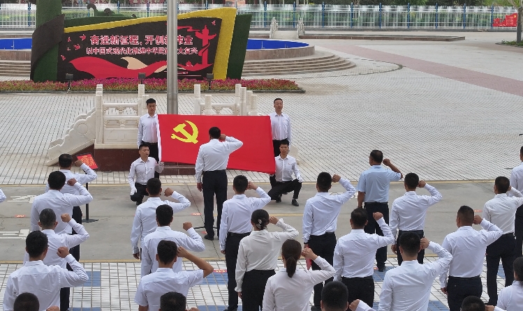 朝阳灿灿,风和日暄。上午10点整,在激昂雄壮、催人奋进的国歌声中,五星红旗冉冉升起,全体党员干部整齐列队,精神饱满、肃然而立,怀着对党和祖国的崇高敬意,向国旗行注目礼、高唱国歌,祝福党的事业蒸蒸日上、伟大祖国繁荣昌盛。