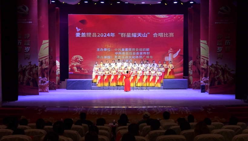 为庆祝中国共产党成立103周年,高举中国特色社会主义伟大旗帜,进一步弘扬爱国主义精神,丰富群众文化生活,激发广大群众爱党爱国情怀和集体荣誉感,6月29日,麦盖提县开展“群星耀天山”合唱比赛,鼓舞和激励全县广大干部群众自信自强、团结奋斗,为麦盖提县经济繁荣发展、社会长治久安、人民安居乐业贡献力量。