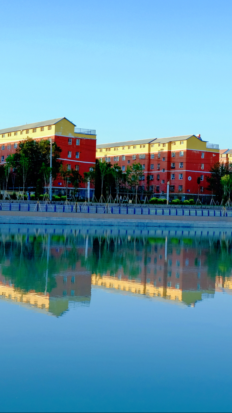 天空蓝得仿佛被水洗过一般,倒映在清澈的河水中,就像是两块纯净的蓝宝石相互映照。