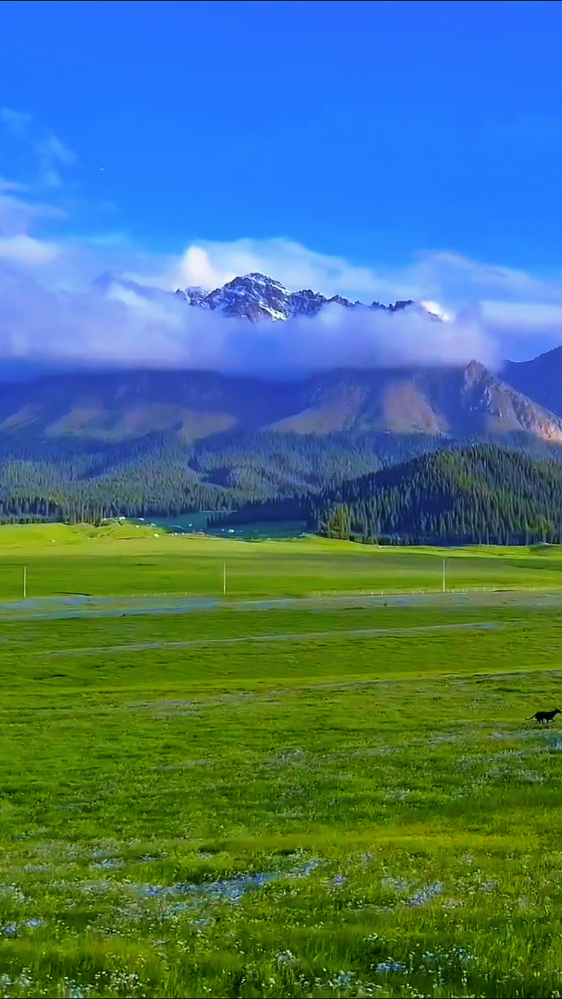 草原上的绿色仿佛是一张巨大的地毯,毛茸茸,踩上去软绵绵的,让人忍不住想要在上面打个滚。