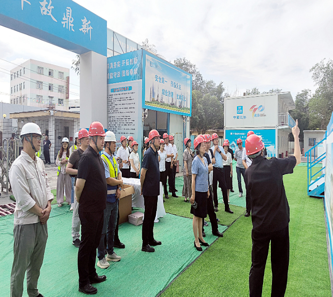 古丽·阿不力木一行深入项目施工现场,实体考察项目的安全文明施工、工程进度、施工规划布局等工作落实情况。