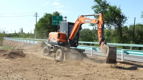 施工单位新疆良宇建设集团有限公司施工负责人韩泽堂说:“这条路叫凯旋北路,总长度有577米,车道是双向四车道,还有绿化带、非机动车道、人行道。” 在沙湾市城区市政道路新建及改造工程智慧大道延长段即迎宾路至重庆路段,路槽开挖作业正在进行当中。
