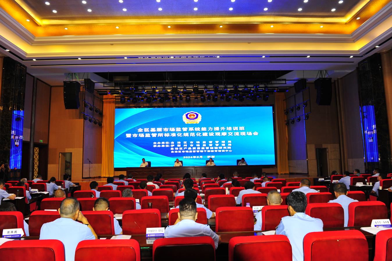 为加快推进市场监管所标准化规范化建设,提升基层监管能力和水平,推动全区市场监管系统各项工作取得扎实成效。6月24日—28日,全区基层市场监管系统能力提升培训班暨市场监管所标准化规范化建设观摩交流现场会在伊犁州察布查尔县举办,全疆各地(州、市)、县(市、区)市场监督管理局分管领导、市场监管所所长等100余名学员参加。