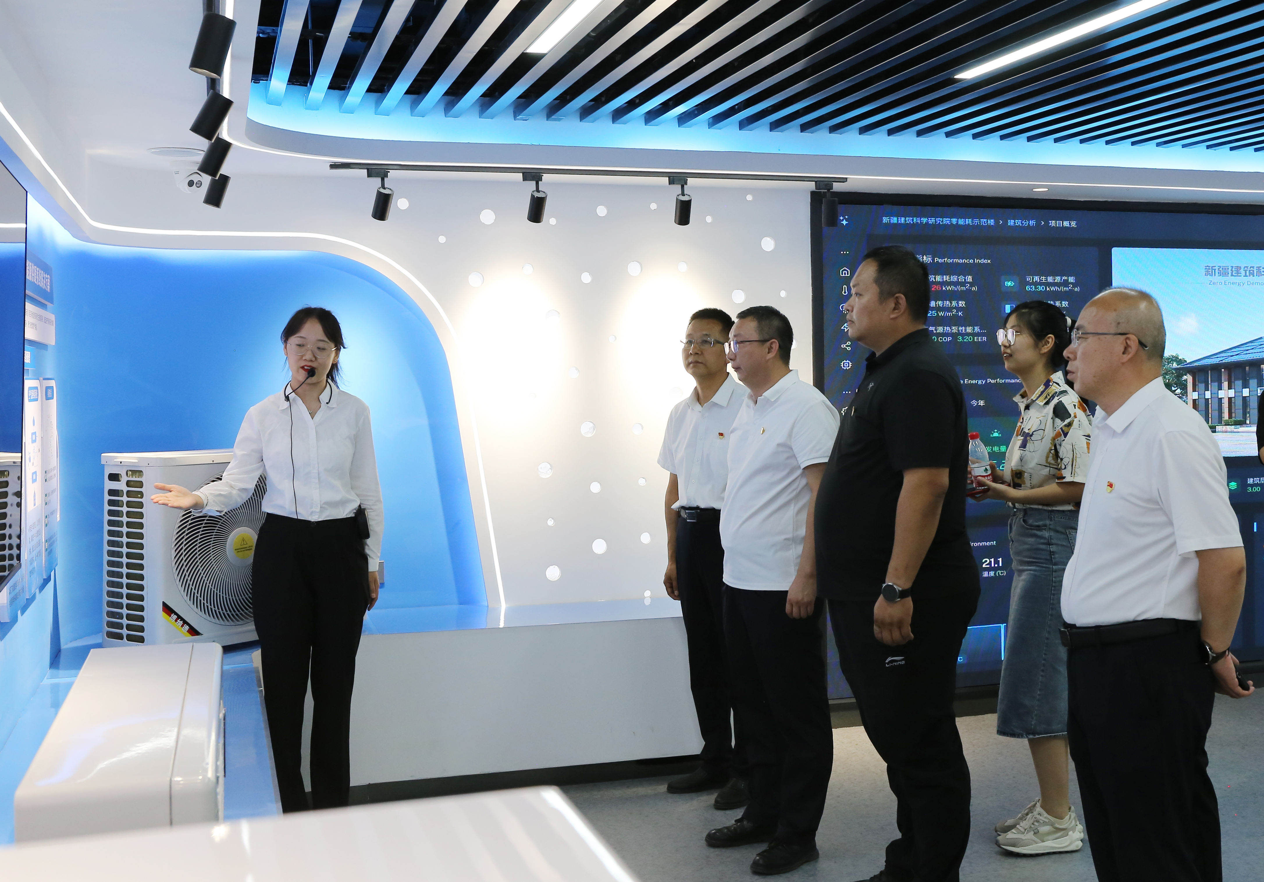 图为工作人员在向甘泉堡经济开发区工作人员介绍新疆首个零能耗示范项目