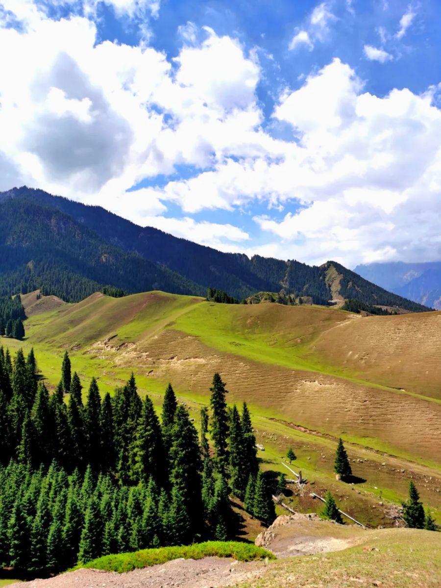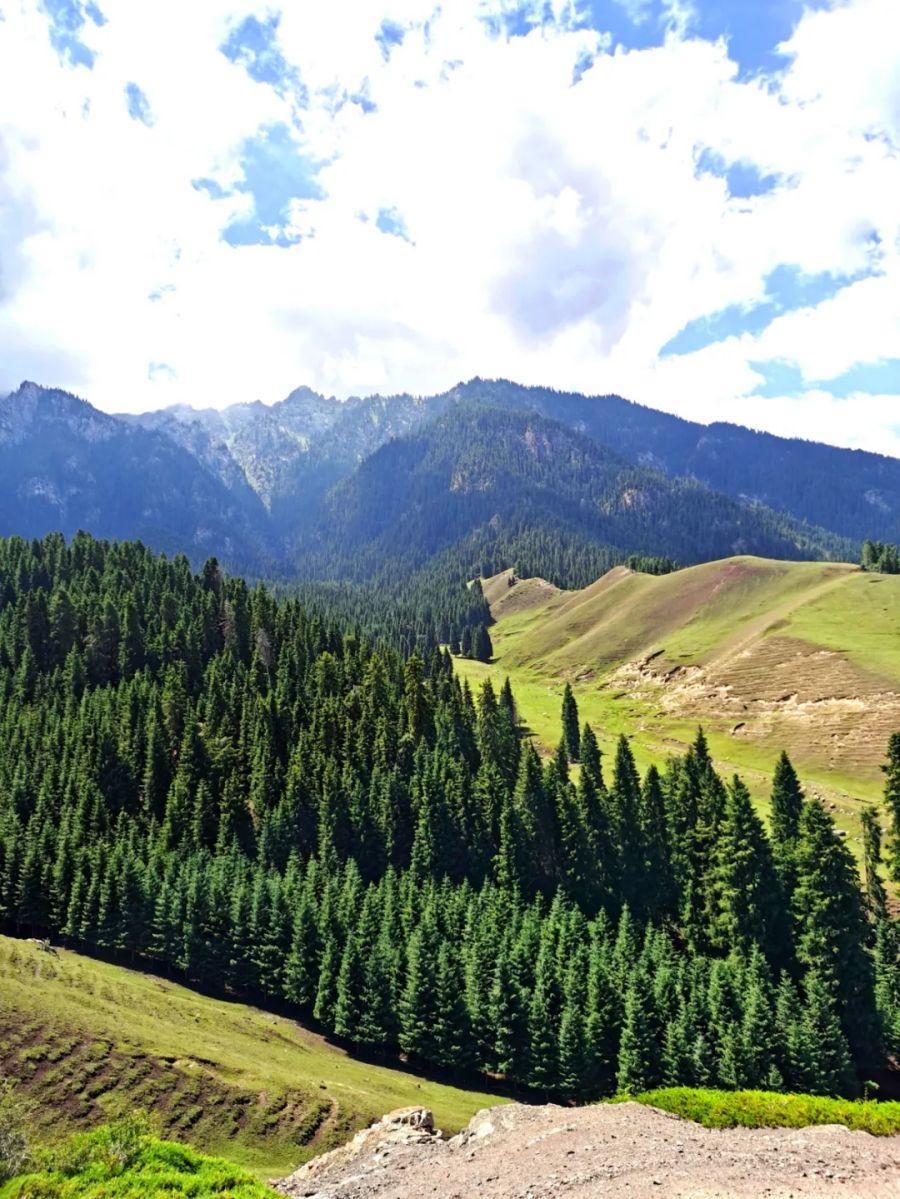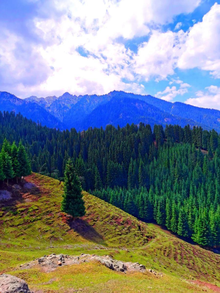 在沙湾市西戈壁镇以南,有一处被誉为人间仙境的白杨沟。这里,高耸的云杉和苍松交织成一片翠绿的海洋,山峦起伏,绿草如茵。抬眼望去,蓝天白云下松涛阵阵作响,一片生机勃勃。走近细看,巨石色彩斑斓、形态各异,在阳光照耀下闪着迷人的光。这里的生活宁静而安逸,牧民们悠然自得地享受着与自然和谐共生的美好时光。它不仅是一幅动人心弦的风景画,更是一个让人心灵得到净化与升华的地方。在这里停留片刻,你将感受到大自然的伟大与生命的奇迹,并找回内心深处那份久违的宁静和平和。(图:杨志成)