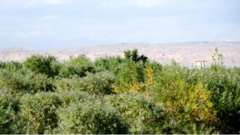 新疆黄羊滩生态林业开发有限责任公司成立于2016年,是一家以生态林业为主导产业的科技型农林企业,2017年由温宿县对外招标引进,对黄羊滩综合治理区已完成的沙棘、杏树和防风林绿化及荒地造林建设实施企业化运营,实现精细化管理,现有沙棘2.3万亩左右,其中挂果面积1万余亩,亩均收益达到4000元以上。从过去的戈壁荒滩到如今的万亩葱茏,在退耕还林工程的大力推动下,黄羊滩正实现着生态富民绿色高质量发展之路。新疆黄羊滩生态林业开发有限责任公司沙棘管理队队长木塔力甫•阿不都格尼说:“我们2016年开始在这里搞荒漠改造,种植沙棘,当时这里全是戈壁,通过引洪分域、生态治理等措施,改良这边的水土环境,保护生态环境,为发展沙棘产业,带农增收打下了良好基础。”