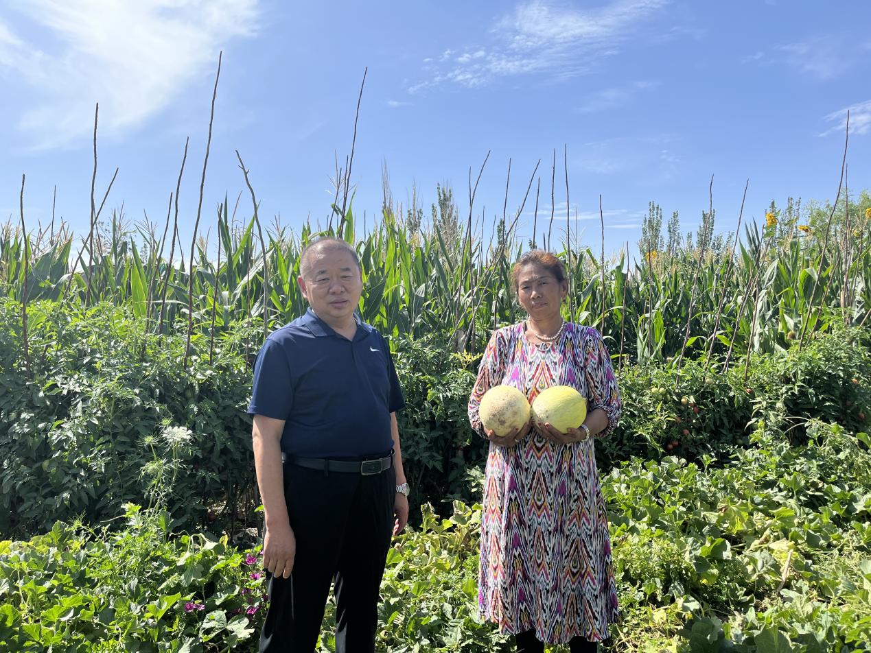 走进该团镇二十四连农民沙木斯丁·库尔班家,一幅生机勃勃的田园景象映入眼帘,院前花团锦簇,争奇斗艳,院后菜田葱郁,西红柿、豆角、辣椒等蔬菜长势良好。