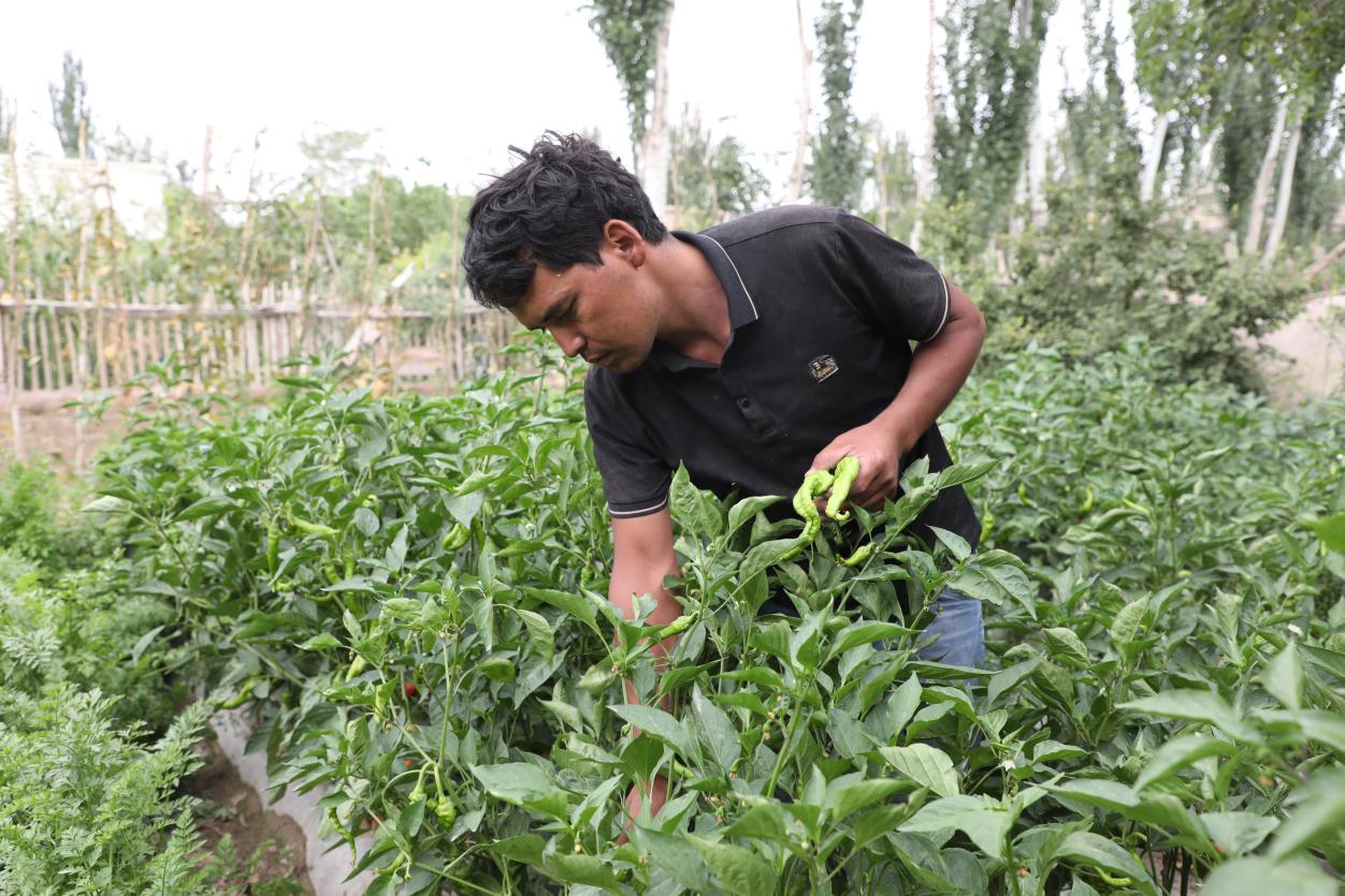 除了在院子里种植果蔬,沙木斯丁·库尔班还养殖了牛、羊和鸽子。“以前我们只种地,年收入约5万元。去年,我家种的蔬菜和水果吃不完,就拿到集市上卖。禽畜和果蔬增收1万到2万元。”沙木斯丁·库尔班一边喂着鸽子,一边给记者算了一笔账。